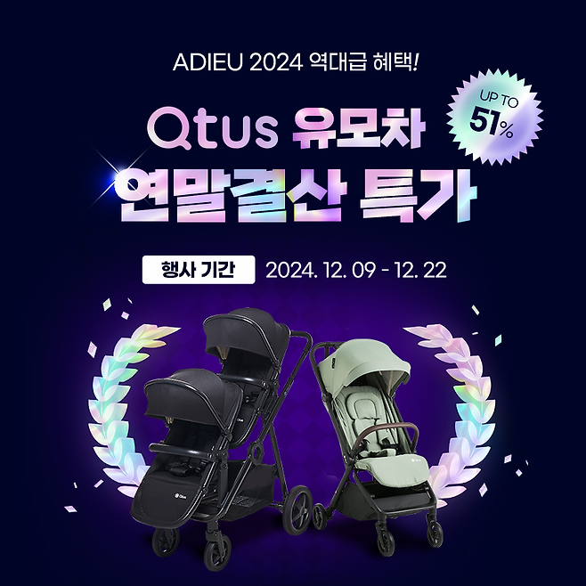 독일 프리미엄 유모차 브랜드 큐터스가 오는 22일까지 네이버 스마트스토어에서 2024년 연말 기념 전 상품 최대 51% 할인 특가를 진행한다.