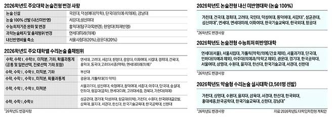 [2026학년도 논술길잡이] 주요 상위대 '미적분, 기하, 확·통' 출제…약식 논술 확대