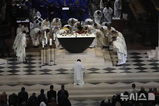 노트르담 대성당 공개 미사 의식 치르는 성직자들