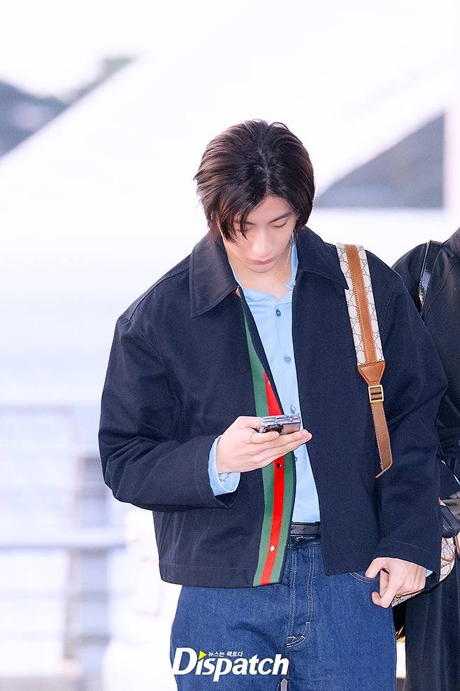앤톤은 데님 팬츠에 재킷을 매치해 댄디한 공항패션을 연출했다. 훈훈한 비주얼이 돋보였다.