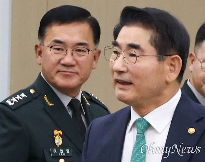 | ▲ 지난 10월 11일 서울 용산구 국방부에서 열린 국회 국방위 국정감사에 참석한 김용현 국방부장관과 여인형 국군방첩사령관 |