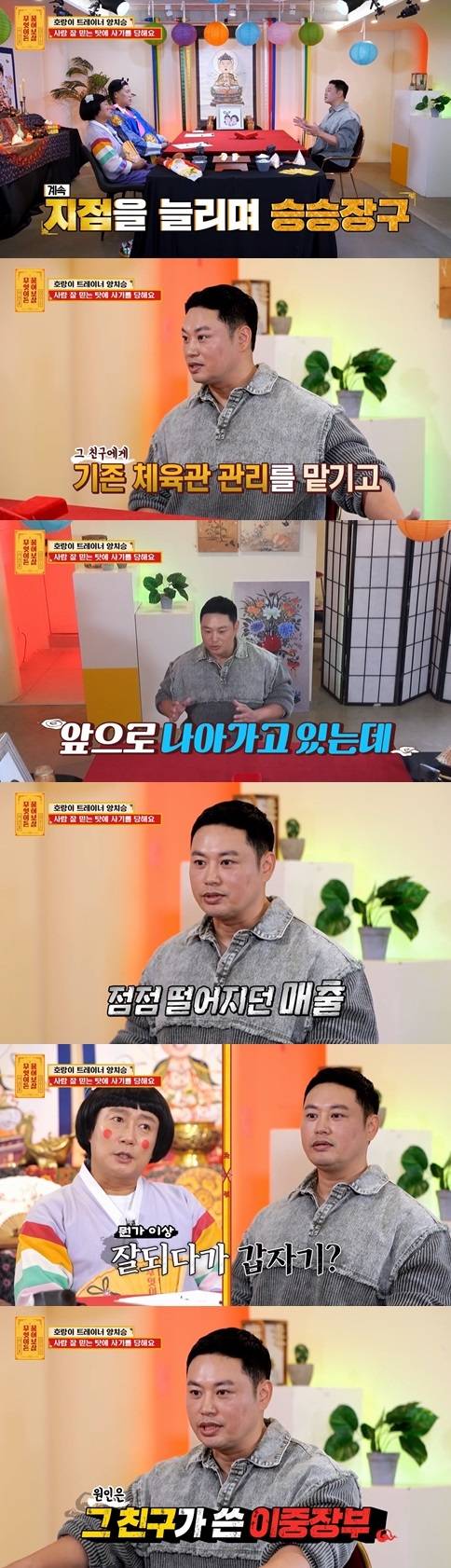 양치승은 다른 지점 오픈을 위해 지인에게 기존 헬스장 관리를 맡겼다고. 그러나 매출이 줄어들기 시작했다고 밝혔다.