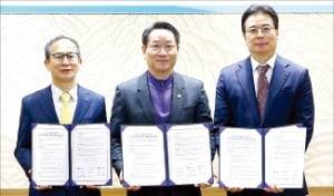 KB금융그룹(회장 양종희·왼쪽)이 10일 인천시(시장 유정복·가운데) 및 한국경제인협회와 소상공인의 안정적인 출산·양육을 돕기 위해 10억원을 지원하는 '소상공인 출산·양육 지원 업무협약'을 맺었다.