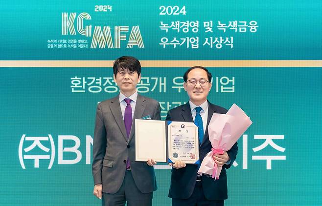 BNK금융그룹이 지난 10일 환경부가 주최하고 한국환경산업기술원이 주관한 ‘2024년 녹색경영 및 녹색금융 우수기업’ 시상식에서 금융지주와 부산은행이 동반 수상의 영예를 안았다고 11일 밝혔다.