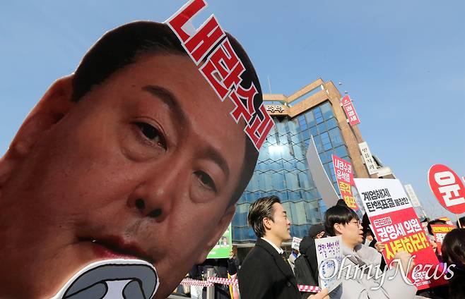 [오마이포토] "국민의힘 해체! 권영세 사퇴!"