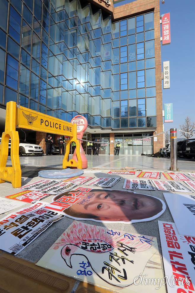| ▲ "국민의힘 해체! 권영세 사퇴!" 용산촛불행동, 용산시민연대, 윤석열 체포단, 이태원시민행동, 더불어민주당 용산구 지역위원회, 조국혁신당 서울시당, 진보당 용산 마루분회, 정의당 용산구 지역위원회, 국민주권당 서울시당, 소나무당 서울시당 주최로 11일 오후 서울 용산구 국민의힘 권영세 의원 사무소 앞에서 '국민의힘 해체! 권영세 사퇴! 기자회견'이 열리고 있다. |