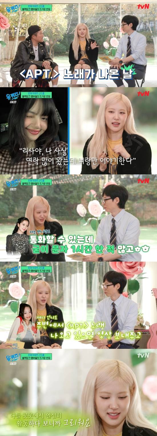11일 방송된 tvN '유 퀴즈 온 더 블럭'(이하 '유퀴즈')에서는 '넘버원' 특집으로 꾸며진 가운데 로제가 제니, 지수, 리사와 끈끈한 팀워크를 자랑한 장면이 전파를 탔다.