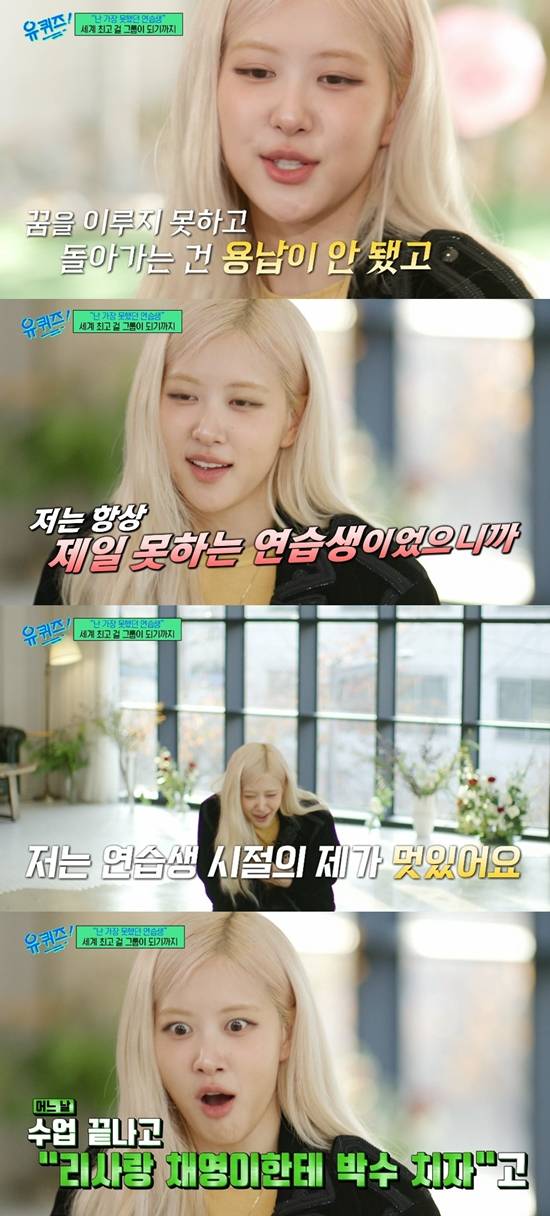 로제는 연습생 시절 자신을 '제일 못하는 연습생'이라고 일컬었다. 그는 "연습실을 공유해서 쓰는데 자신감이 부족할 때라 마음껏 연습을 못하니까 사람들이 없는 시간이 필요했다. 그래야 마음껏 해보고 싶은 거 다 할 수 있으니까. 새벽에 해 뜨는 걸 보면서 뿌듯한 마음으로 '연습 잘했다' 생각했다. 연습생 시절의 제가 멋있다. 언니 같다"고 떠올렸다.