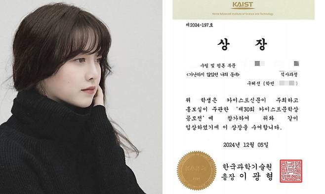 '이혼' 구혜선 "사랑 나누었던 찬란한 순간 기억해"...카이스트 '문학상' 수상