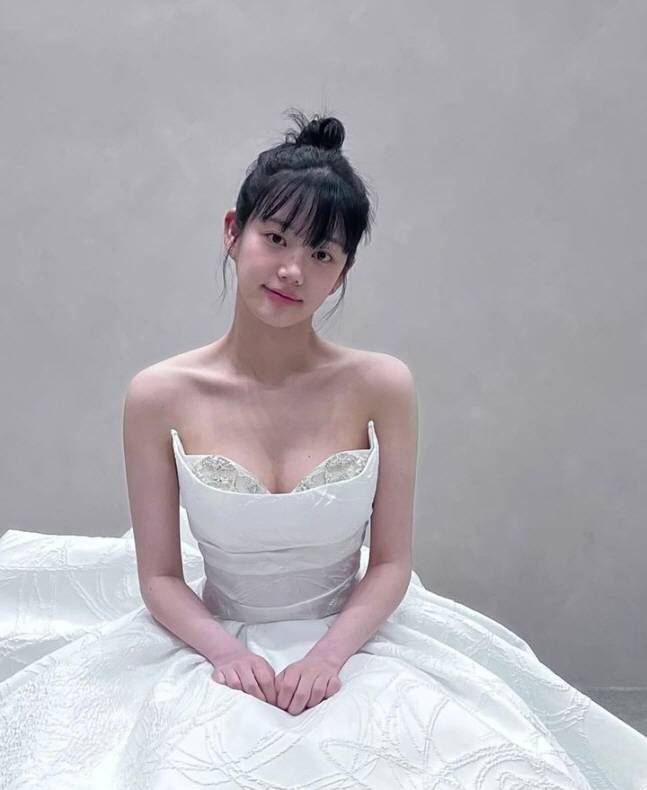 공개된 사진 속 이유비는 오프숄더 웨딩드레스를 입고 단아한 포즈를 취해 눈길을 끈다. 특히 가슴 라인이 돋보이는 웨딩드레스를 완벽히 소화한 이유비에 대해 팬들은 "당장 결혼해도 되겠다"라는 반응을 보였다.