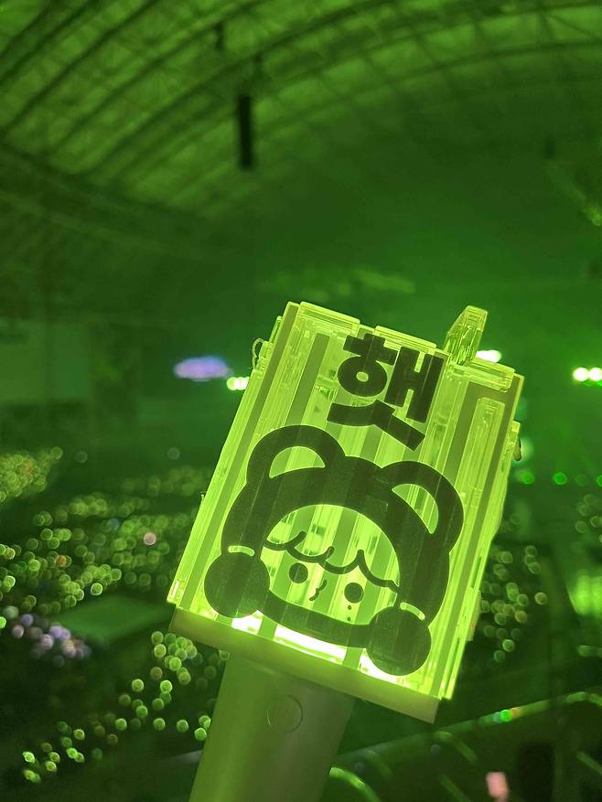 덕후의 DNA를 가지고 태어나 H.O.T 이후에도 아이돌을 꾸준히 좋아했지만 콘서트에 갈 정도로 입덕한 것은 처음이었다. 공식 응원봉을 구입하면서 일단 5만 원에 가까운 가격에 깜짝 놀랐다. 팬덤 별로 색색의 풍선을 들던 시대는 끝났고 엔터사에서는 각 팬덤을 대표하는 공식 응원봉을 만들어 굿즈로 판매한다. 콘서트에 가면 중앙 제어를 통해 응원봉 색깔이 일제히 변하는 광경을 볼 수 있다.