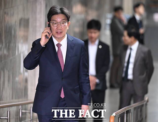 [더팩트ㅣ국회=이새롬 기자] 권성동 국민의힘 신임 원내대표가 12일 오후 서울 여의도 국회에서 본회의에 참석하며 윤석열 대통령 탄핵 관련 당론을 밝히고 있다.