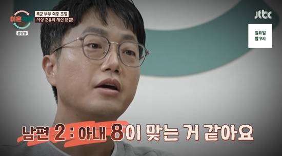 남편은 재산 분할에 대해 "2대8"이라고 얘기하면서 "제가 2, 아내가 8이다"라고 말해 모두를 놀라게 만들었다.