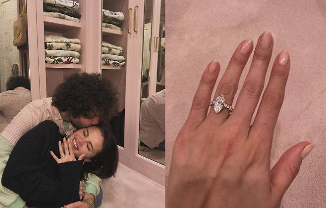 셀레나 고메즈는 12일 자신의 계정에 "영원은 지금부터 시작(forerver begins now)'라며 사진을 게재했다. 공개된 사진에는 셀레나 고메즈에게 뽀뽀를 하는 약혼자 베니 블랑코의 모습이 담겼다. 또 셀레나 고메즈는 왼손 약지에 커다란 다이아몬드 반지를 끼고 있는 사진도 공개했다.