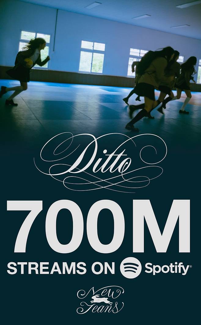 스포티파이에 따르면, 뉴진스는 지난 11일 싱글 앨범 'OMG'의 수록곡 '디토'(Ditto)로 7억 스트리밍을 돌파했다.