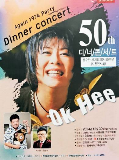 데뷔 50주년 디너 콘서트(사진)를 여는 가수 옥희(71) 씨는 지난 9일 남편 홍수환(74) 씨와 함께한 문화일보 인터뷰에서 이렇게 말문을 열었다. 두 사람은 오는 30일 그랜드 하얏트 서울호텔 그랜드볼룸에서 콘서트와 함께 ‘세계챔피언 50주년 사진전’을 진행한다.