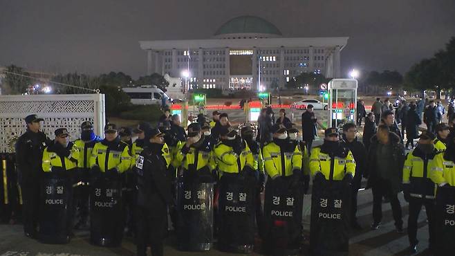 이에 경찰 국가수사본부는 국회를 관할하는 서울 영등포경찰서에 이러한 요청을 전달했고, 형사과장을 팀장으로 한 강력팀 형사 10명을 국회 앞에 보낸 것으로 MBC 취재 결과 파악됐습니다.