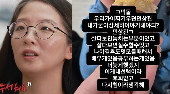 이어 "우리가 어찌 키우던 뭔 상관 내가 굳이 상세히 이야기해야 돼? 뭔 상관ㅋ 살다 보면 놓치는 부분이 있고 살다 보면 실수할 수 있고 나야 결혼도 멋모를 때 해서 배우는 게 있음 공부하는 게 있음 더 늦게 했겠지 이게 내 선택이라 후회 없고 다시 첨이라 생각해"라는 글을 더했다.