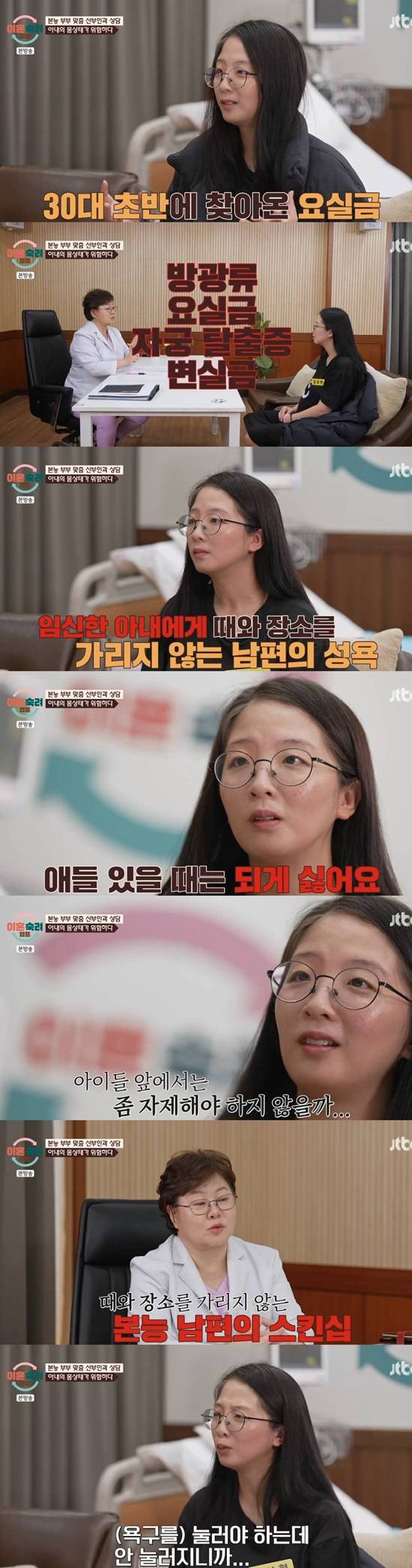 앞선 방송에서 남편의 과한 성욕으로 인해 경찰 신고까지 했다고 밝힌 바 있다. 또 남편이 시댁에서도 성관계를 원했다고 밝혀 충격을 안기는가 하면, 임신이 무섭다고도 했다. 무직인 이들 부부, 본능 아내는 남편이 집안일과 육아를 도와주지 않으면서 성관계를 원한다고 했다.