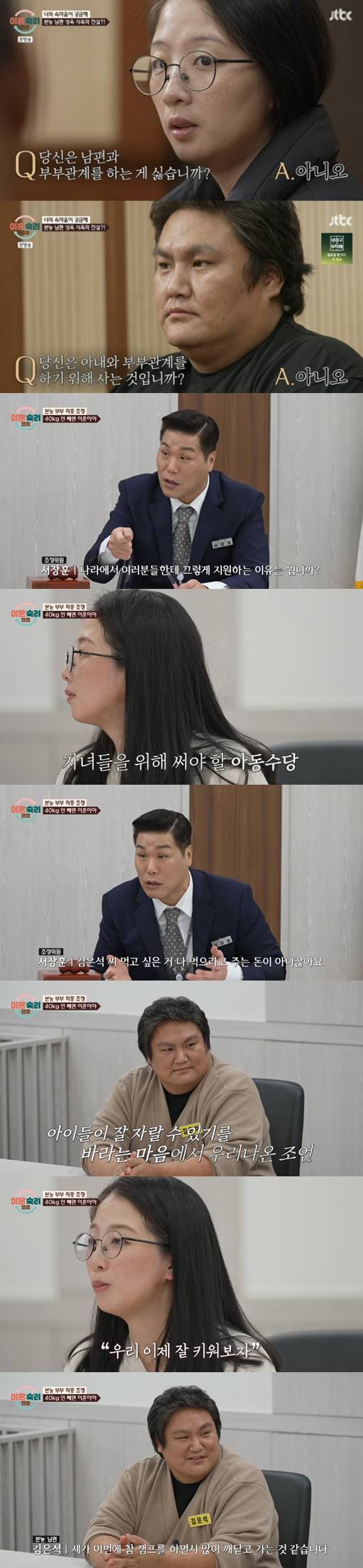 이렇듯 남편과의 성관계에 대한 고민을 털어놓았으나 이날 방송에서는 '남편과 부부관계를 하는 게 싫습니까'라는 질문에 아내는 "아니요"라고 답했다. 두 사람은 이후 서로를 이하해고 이혼하지 않기로 했다.
