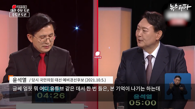 ■ 윤석열: 글쎄, 얼핏 뭐 어디 유튜브 같은 데서 한 번 들은, 본 기억이 나기는 하는데.
