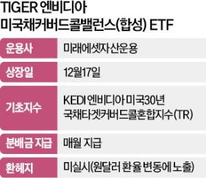12일 한국거래소에 따르면 미래에셋자산운용은 ‘TIGER 엔비디아미국채커버드콜밸런스(합성)’ ETF를 오는 17일 유가증권시장에 상장한다. 국내 언론사 중 유일한 지수산출기관인 한국경제신문사의 ‘KEDI 엔비디아 미국30년 국채타겟커버드콜혼합지수(TR)’를 기반으로 운용한다.
