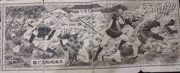 | ▲ 일청사건조선전투실기 청일전쟁화보 평양전투 풍속만화이다. 본 자료는 현재 동학혁명기념관에 전시중이다. |