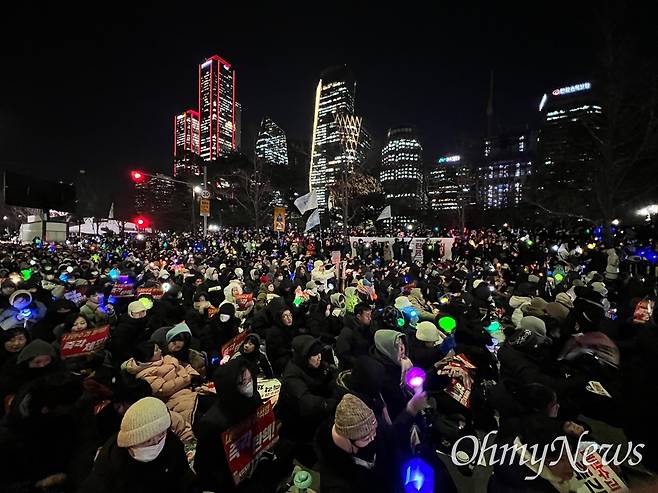 | ▲ '윤석열 즉각 퇴진·사회대개혁 비상행동' 주최로 13일 오후 서울 영등포구 국회의사당 인근에서 열린 탄핵소추안 국회 통과 촉구 촛불집회에서 참가자들이 응원봉을 들고 집회에 참여하고 있다. |