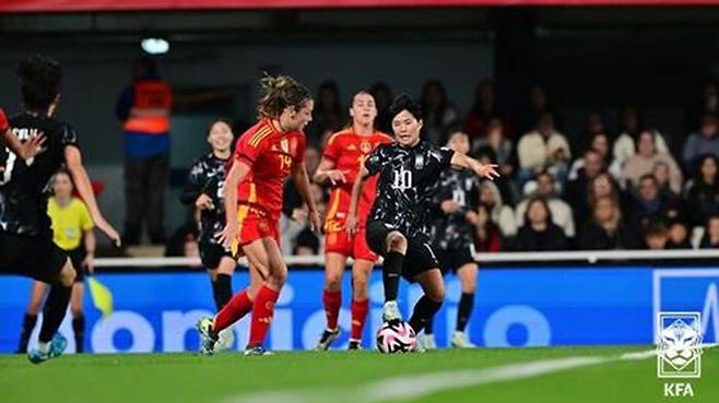 ▲ 여자축구대표팀이 11월 스페인에서 치른 스페인과 친선경기 모습