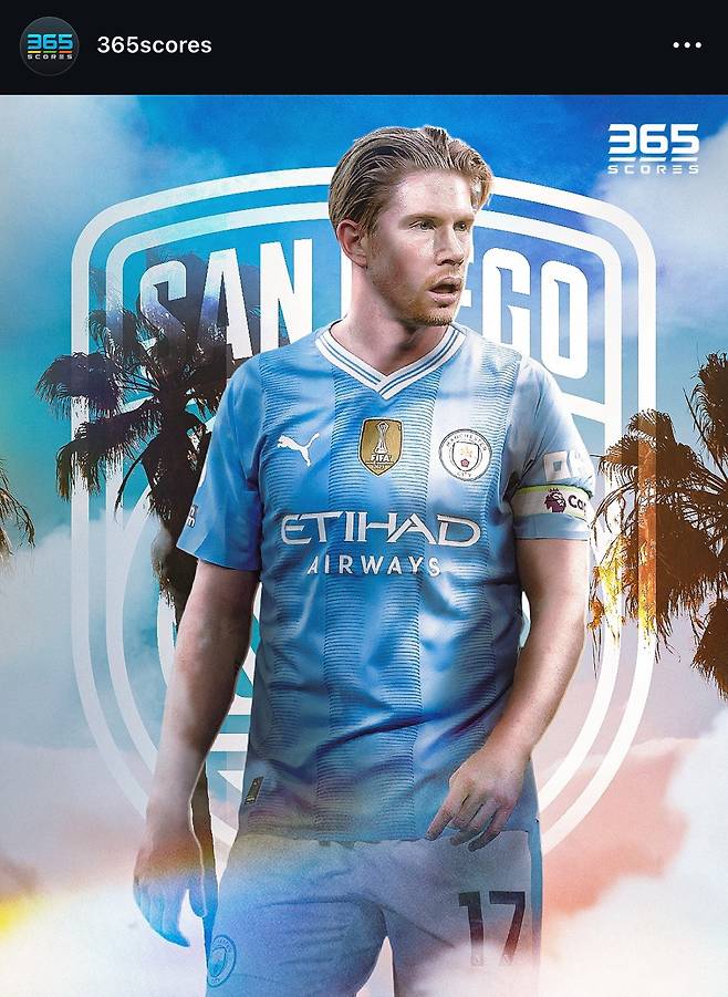 영국 매체 'TBR 풋볼'은 12일(이하 현지시간) "메이저리그 사커(MLS) 신생팀 샌디에이고가 케빈 더 브라위너(33·맨체스터 시티) 영입을 원한다"며 "최근 이르빙 로사노(PSV 에인트호번) 영입을 확정 지은 구단은 두 명의 지명 선수를 추가로 데려올 수 있다"고 보도했다.