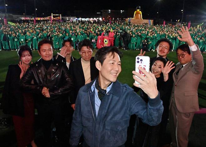 황동혁 감독은 작품 속 게임 참가자들과 같은 '트레이닝복'을 입고 모인 2,000여 명의 팬들을 향해 "이 순간을 잊을 수 없을 것 같다"며 벅찬 마음을 전했다. 이어 "오징어 게임의 팬으로서 이벤트에 참여해 줘서 고맙다. 여러분들이 최고의 크리스마스 선물이다"라며 팬들을 향한 애정을 드러냈다.