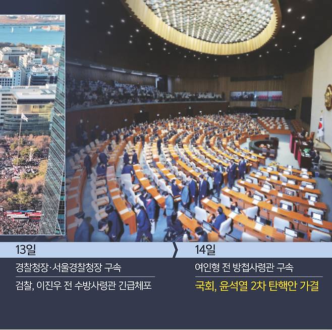 공교롭게도 8년 전 박근혜 전 대통령 탄핵 때와 비슷하게 이번에도 도널드 트럼프 미국 대통령 당선인이 차기 행정부를 넘겨받는 시점에 한국의 현직 대통령의 탄핵안이 가결됐다. 트럼프 당선인이 한·미·일 협력 구도에 얼마나 적극적일지도 알 수 없는 데다, 방위비 분담금 재협상, 주한미군 철수 위협 등의 카드를 쓸 수도 있는 상황에서 미국과의 관계에 변수가 더해지는 건 분명 좋지 않은 신호라는 분석이 나온다.