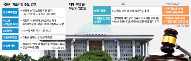 국회가 서류 제출을 요구하면 영업비밀 보호를 이유로 거부할 수 없도록 한 야당의 국회증언감정법 개정안도 문제의 소지가 많다는 평가가 나온다. 기업들은 이 법이 발의되면 고객사 리스트 같은 영업기밀이 빠져나갈 수밖에 없다고 우려한다. 야당 주도로 통과시킨 예산안 자동 부의 폐지안(국회법 개정안)도 예산안의 국회 처리가 늦어질 수 있어 논란거리로 꼽힌다. 한국경영학회장을 맡고 있는 김연성 인하대 경영학과 교수는 “많은 기업들이 미래 불확실성이 크다고 보고 의사결정을 미루고 있다”며 “반도체·자동차·조선·배터리처럼 한국이 경쟁력을 보유해왔던 산업을 중심으로 (정치권의) 규제 완화와 지원이 이뤄져야 한다”고 조언했다.