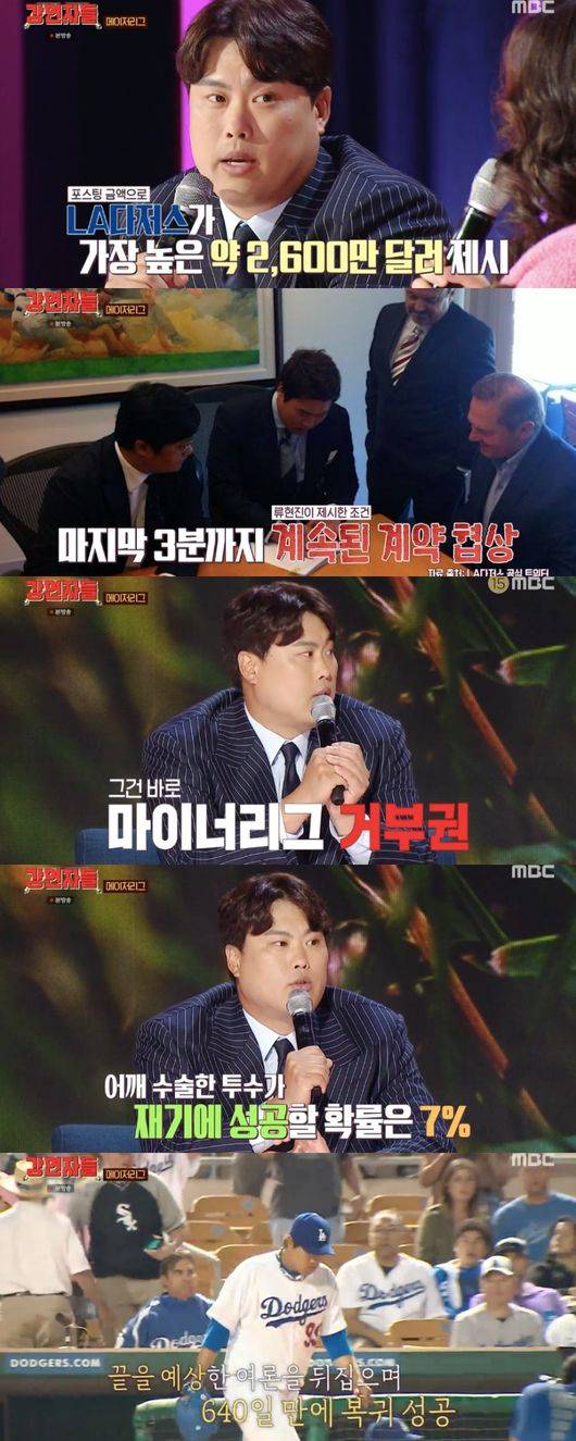 15일 방송된 MBC '심장을 울려라 강연자들'(이하 '강연자들')에서는 류현진이 메이저리그 진출 당시 비하인드를 공개했다.