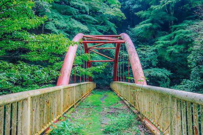 그곳에 바로 미노오 폭포가 자리한다. 폭포까지는 대략 3km, 천천히 거닐며 트레킹하기 좋은 코스다. 이 길을 타키미치라고 한다. 20여 분 정도 거닐면 카페와 갤러리로 변모한 과거의 여관, 하시모토테이가 길옆으로 가득 자리한다.