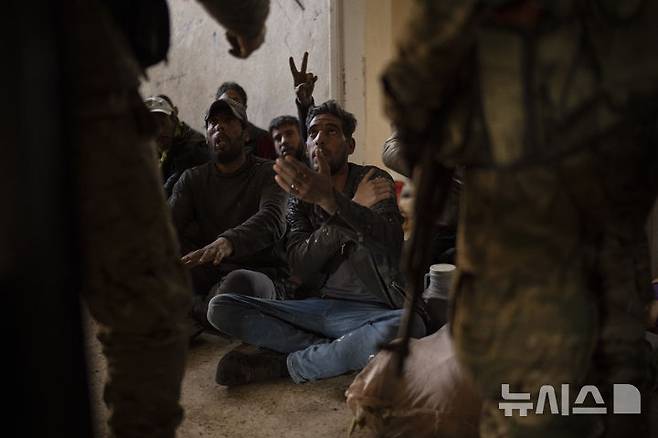 [다마스쿠스=AP/뉴시스] 15일(현지시각) 시리아 다마스쿠스 외곽 후세이니예 마을에서 반군 전투원들이 바샤르 알아사드 정권 시절 군 장교들의 주거 단지를 약탈한 혐의를 받는 남성들을 체포해 구금하고 있다. 반군 전투원들은 이 지역 주거 단지에 몰려들어 일부 아파트를 방화한 약탈자들을 제압하기 위해 이 마을에 투입됐다. 2024.12.16.