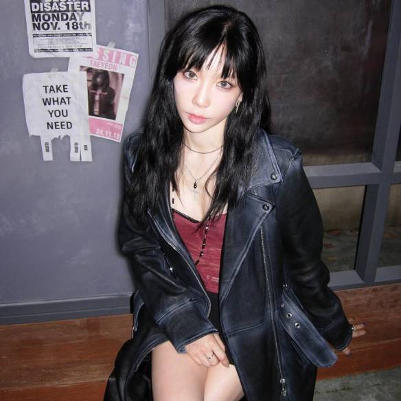 겨울에도 레더 재킷 스타일링을 참을 수 없다면 태연을 보라! 태연은 롱 레더 재킷에 센스있는 와인색 이너 톱을 입어 완벽한 연말 레드룩을 선보였다. 레더 소재와 함께 레드를 입을 땐 채도가 높은 것보단 태연처럼 채도가 낮은 와인 색을 선택하는 것이 좋은 방법. 살짝 심심할 수 있는 목 부분은 네클리스 레이어링을 더하는 것도 잊지 말자. 쇼츠와 롱부츠, 스모키 아이 메이크업까지 더하면? 실패할 리 없는 100점짜리 레드 스타일링!