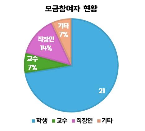 | ▲ 모금에 참여한 기부자 현황이다. 학생이 가장 많았고 다음으로는 직장인과 교수, 기타가 뒤를 이었다. |