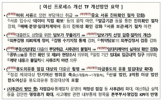 금감원 은행검사1국은 여신 프로세스 개선 방안과 내부통제상 유의사항을, 은행검사2국은 금융사고 보고체계와 사고금액 환수 절차 개선방안을, 은행검사3국은 최근 은행권의 주요 금융사고 발생 사례를, 감독총괄국은 은행권 책무구조도 시범운영 결과를 각각 발표했습니다.