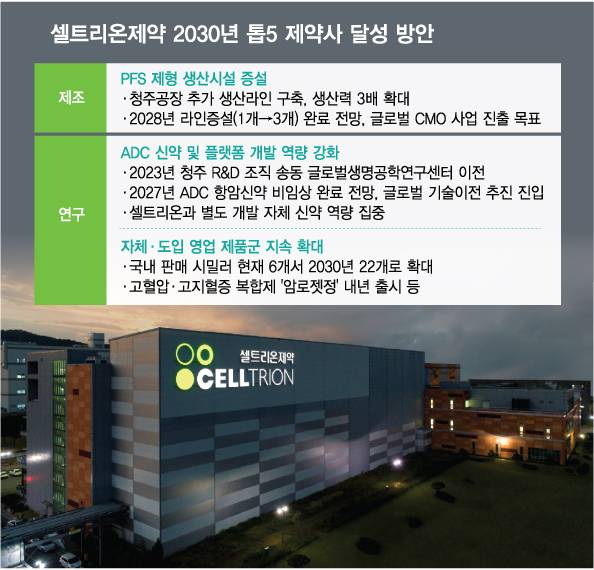 셀트리온그룹의 케미컬(화학)의약품 사업과 국내 바이오시밀러(바이오복제약) 유통을 맡고 있는 셀트리온제약이 2030년 국내 5대 매출 제약사로의 도약하겠단 목표달성을 위해 생산시설 증설에 돌입했다. 글로벌 역량 강화를 통해 내수에 치우쳤던 매출 구조를 다변화하면 회사측은 목표를 이룰 수 있을 것으로 기대하고 있다.
