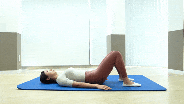 ④ 골반과 척추가 일직선이 되도록 하고, 엉덩이부터 허리, 등 순서로 골반을 들어올린다.