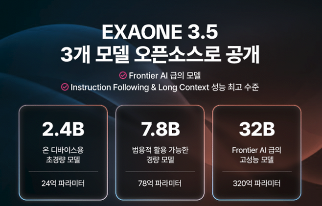 ▶올해 엑사원 3.0인 7.8B(78억개 파라미터) 모델을 공개한 데 이어, 엑사원 3.5로 고사양 환경에서 고난도 작업을 처리할 수 있는 32B, 범용적인 용도로 사용할 수 있는 7.8B, 스마트폰·태블릿PC에 내장할 수 있는 초경량 2.4B 등 3종을 배포했다. 그 결과 앞으로 LG도 본격적인 AI 경쟁에 뛰어드는 것 같다는 의견을 많이 들었다. 아시아에서 중국 알리바바의 QWEN(큐원)과 동등하거나 1~2위권을 다투는 것 같다는 피드백도 나오는 등 LG의 AI모델 발표에 대한 기대감이 상당하다고 느꼈다.