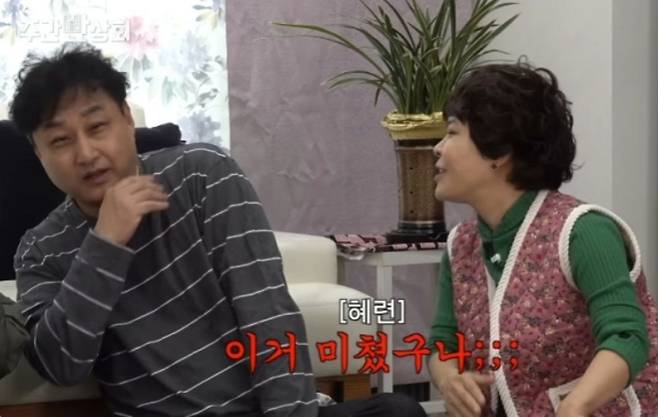 [TV리포트=이지은 기자] 개그우먼 조혜련이 김수용의 폭로에 당혹스러움을 감추지 못했다.