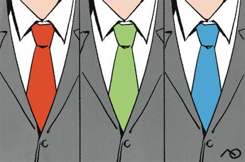 90년대 이후 서구에서 인기를 끈 ‘협상학’에선 짙은색 양복에 화려한 색의 넥타이를 매면 상대방에게 결단력 있는 사람으로 비친다고 가르친다. 반면, 물방울무늬 넥타이는 결단력이 부족한 인물로 보이게 한다고 전했다. 정치인의 경우 넥타이는 본인의 소신과 지향성, 변화를 보여주는 일종의 정치 도구다.