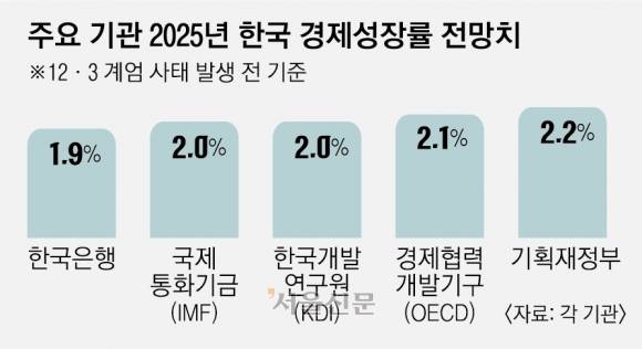 한국은행은 내년 경제성장률 전망치로 1.9%를 제시했다. 글로벌 투자은행(IB)들은 1%대 중반까지 낮춰 잡았다. 씨티는 지난달 29일 내년 전망치를 1.6%로 내놨다. 더 심각한 문제는 탄핵 변수가 반영되지 않았다는 점이다. 일각에선 트럼피즘과 탄핵 후폭풍이 맞물려 하방리스크가 확대된다면 내년 성장률이 1%대 초중반까지 미끄러질 것이란 전망도 나온다.