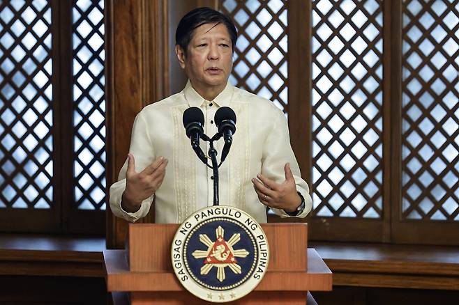 | ▲ 지난 6일(현지시간) 페르디난드 마르코스 주니어 필리핀 대통령이 마닐라 말라카낭 대통령궁에서 연설하고 있다. |