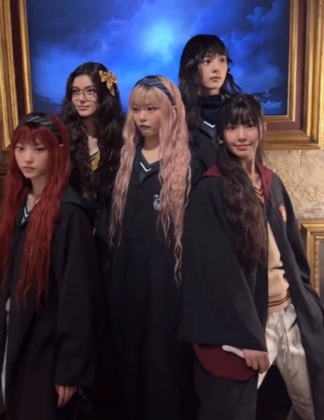 뉴진스는 14일 새롭게 개설한 '진즈포프리' 계정에 일본 해리포터 스튜디오에서 찍은 사진을 여러 장 게재했다.