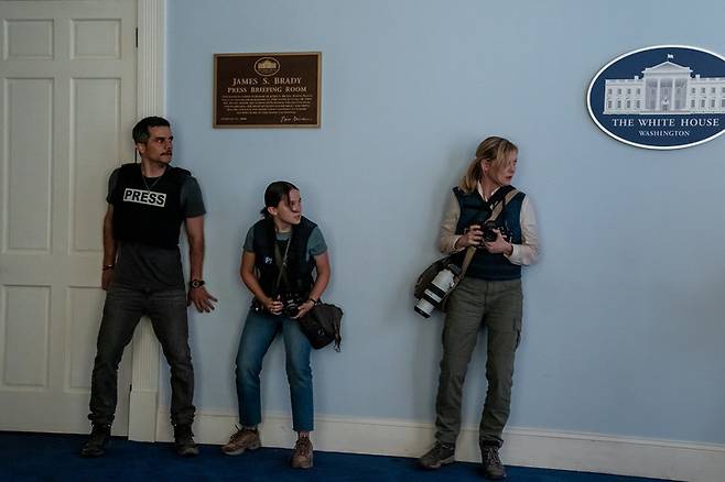 거대한 규모의 군사 기지와 어딘가를 주시하며 총을 겨누는 군인들의 모습은 둘로 갈라진 미국에서 내전이 벌어진 스펙터클한 상황을 짐작게 한다. 여기에 백악관으로 들어선 리와 제시, 그리고 조엘(와그너 모라)의 긴박한 모습은 과연 그들이 대통령을 만날 수 있을지, 어떤 인터뷰를 담아낼 수 있을지 영화의 결말을 향한 궁금증을 불러일으킨다.