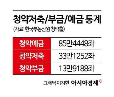 세부적으로는 청약예금이 85만4448좌로 가장 많았고, 청약저축(33만1252좌), 청약부금(13만9188좌) 등이 뒤를 이었다. 주택청약제도는 1977년 신설된 '국민주택 우선공급에 관한 규칙'에 따라 출발했다. 처음엔 공공주택에 적용됐으나 이듬해부턴 민영주택에도 청약제도를 적용하게 됐다. 이에 따라 입주자 저축은 공공·민영주택 구분에 따라 ▲청약저축 ▲청약부금 ▲청약예금으로 분리돼 있었다.