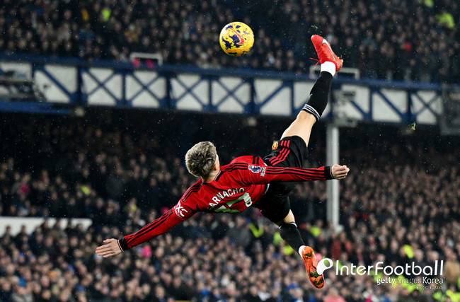 가르나초는 지난 시즌 2023-24시즌 에버턴전에서 환상적인 바이시클킥으로 골을 기록했다.